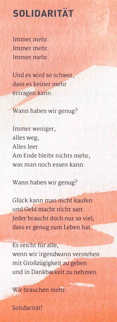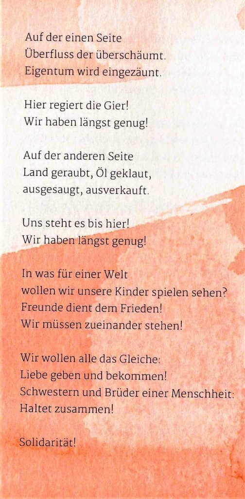 Der Text zu dem Somg SOLIDARITÄT der Band einklang aus dem Album bunte Musik: